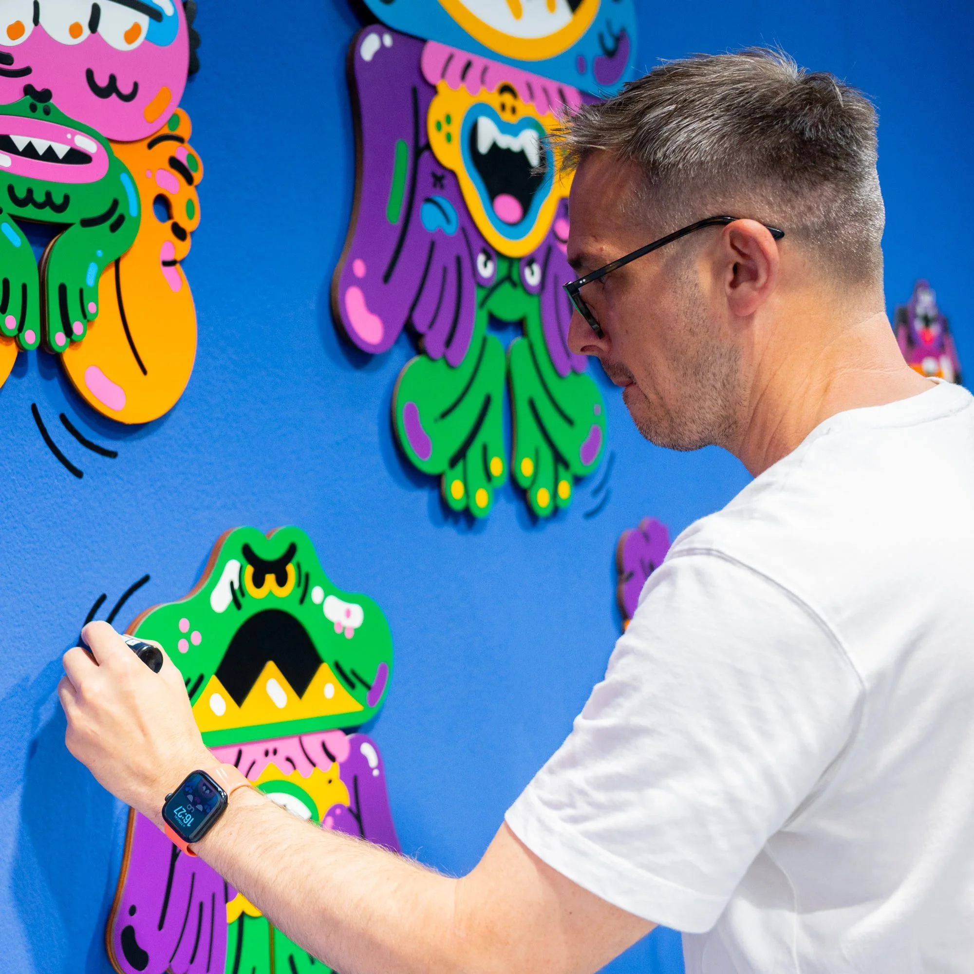 I create bold, playful characters inspired by the pop and toy culture of my youth. Rooted in street style, they’re designed to hit you with pangs of nostalgia while still feeling fresh and original.